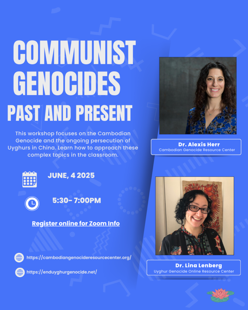 Join for an intimate educator’s workshop hosted by the Cambodian Genocide Resource Center and the Uyghur Genocide Online Resource Center